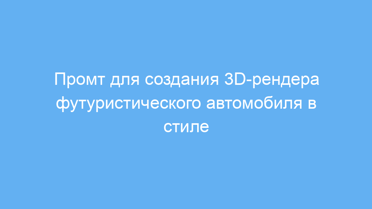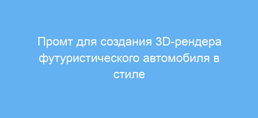 Использование этого промта позволяет быстро создавать качественные и стильные 3D-изображения футуристических автомобилей в киберпанк-стиле. Это экономит время и усилия на подготовку подробных описаний, дает стабильный и эстетически привлекательный результат для различных проектов.