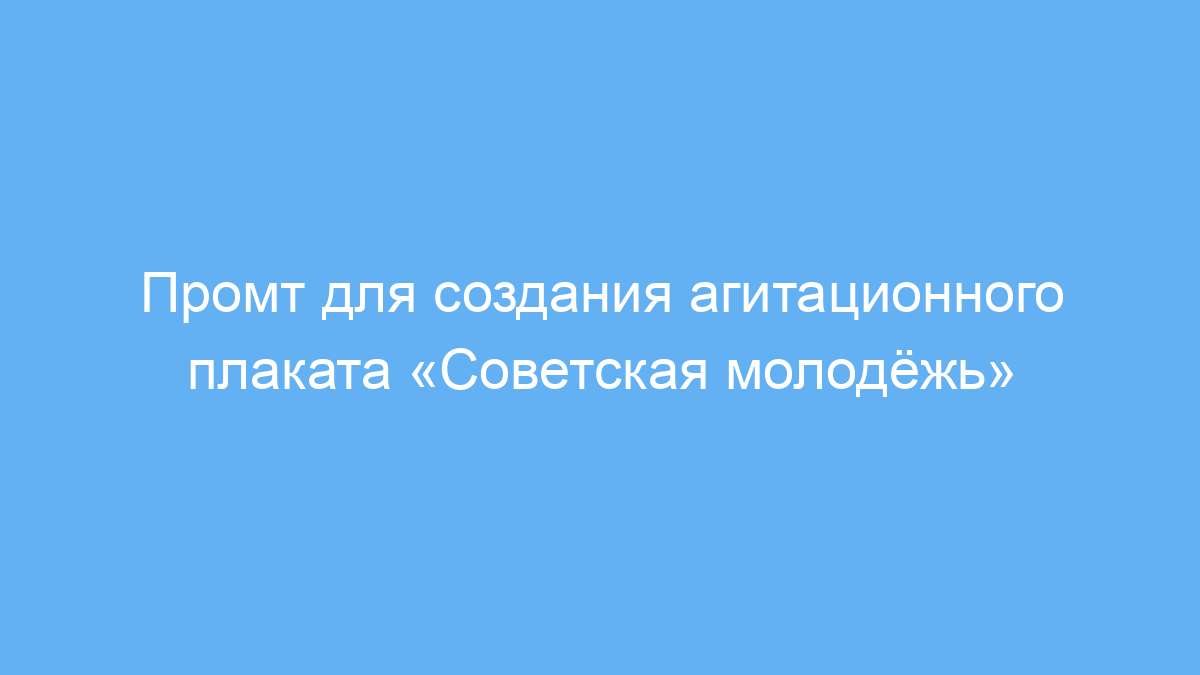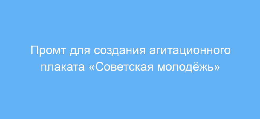 Данный промт предназначен для пользователей нейросетей, которым нужно быстро и просто создать агитационный плакат в стиле советской пропаганды. Это может быть полезно дизайнерам, историкам, преподавателям или любителям ретро-графики, которые хотят визуализировать идею советской молодёжи с акцентом на комсомольцев, флаг и мощный лозунг.