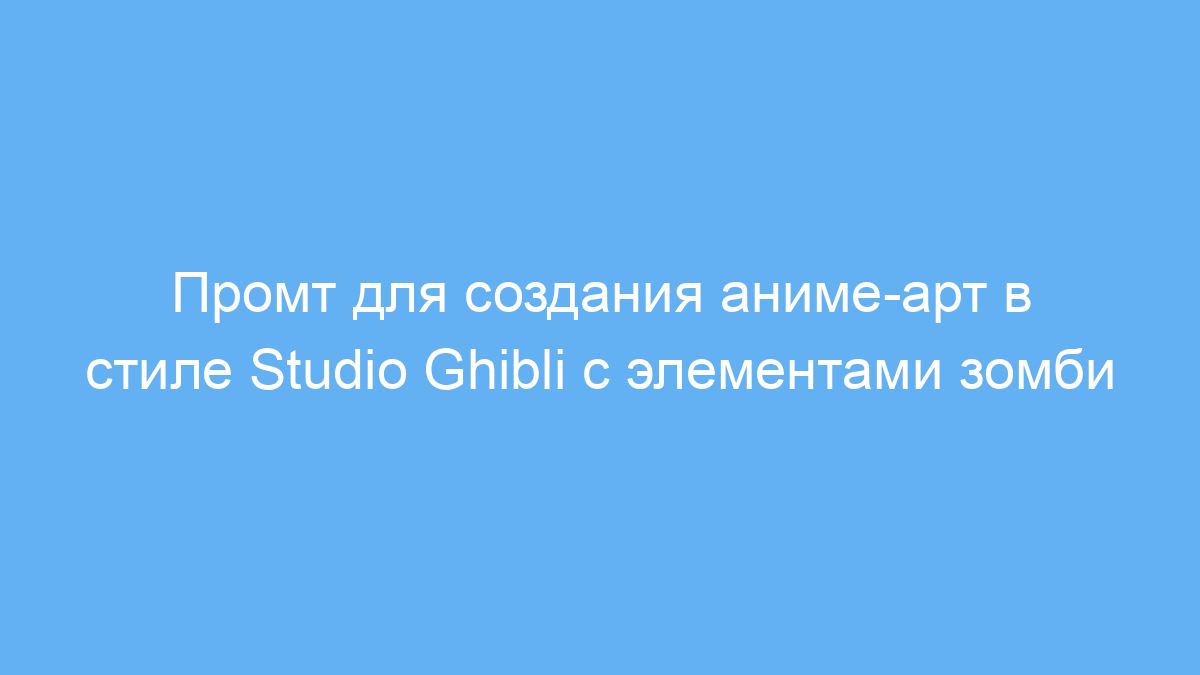 Этот промт предназначен для художников, дизайнеров и всех, кто хочет получить изображение в уникальном стиле аниме Studio Ghibli с добавлением зомби-атмосферы и ретро окружения. Он помогает создавать атмосферные иллюстрации или концепт-арты на основе фотографий, сочетающие японскую анимационную эстетику, элемент ужасов и винтажный фон.