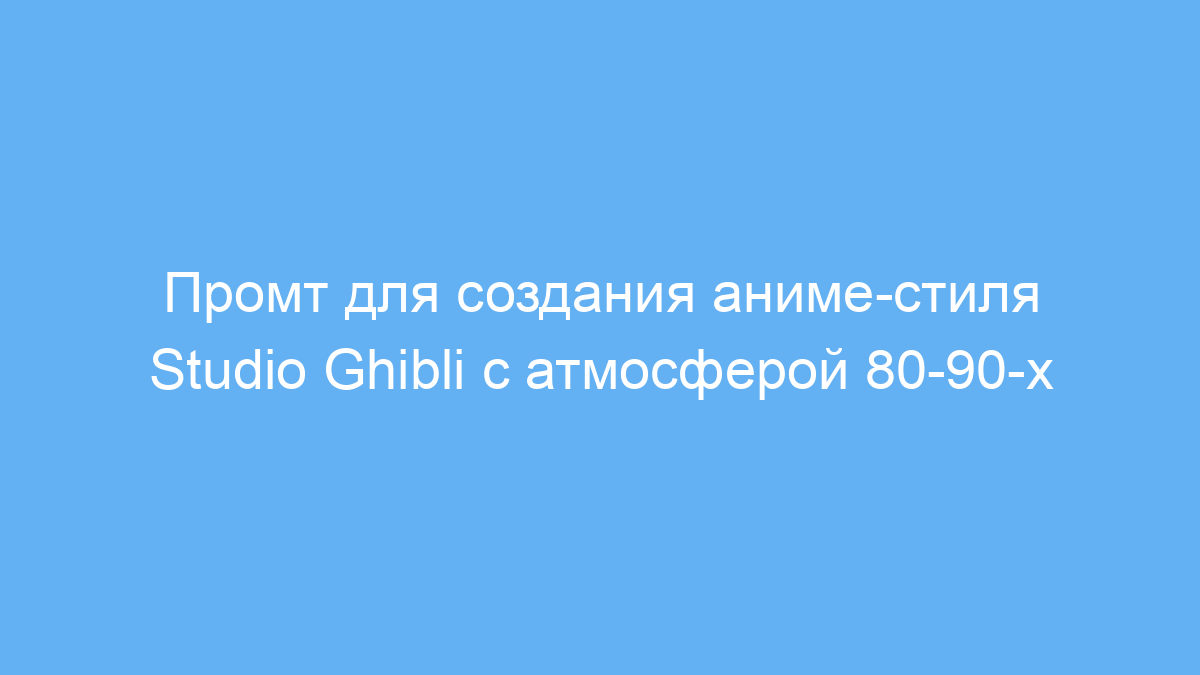 Этот промт предназначен для тех, кто хочет преобразовать обычные фотографии в уникальный аниме-стиль, напоминающий работы Studio Ghibli. Он поможет создать атмосферу ностальгии по 80-90-м годам, включая ретро-декор, такой как гаражи с рисунками на стенах. Промт решает задачу стилизации изображений, делая их похожими на кадры из мультфильмов, что полезно для художников, дизайнеров и маркетологов.