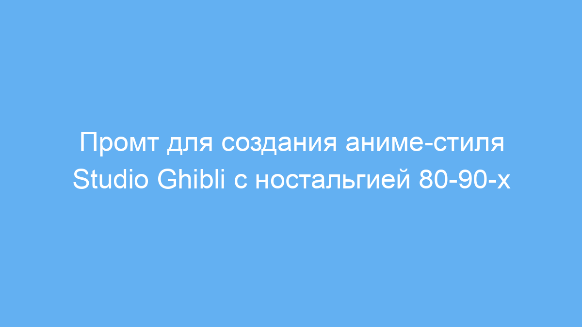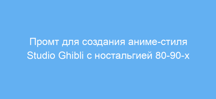 Этот промт подходит для художников, дизайнеров, блогеров и любителей анимации, кто хочет преобразовать обычное фото в уникальный рисунок в стиле Studio Ghibli. Особенно это полезно для тех, кто хочет передать атмосферу ретро 80-90-х годов с элементами ностальгии и винтажной эстетикой.