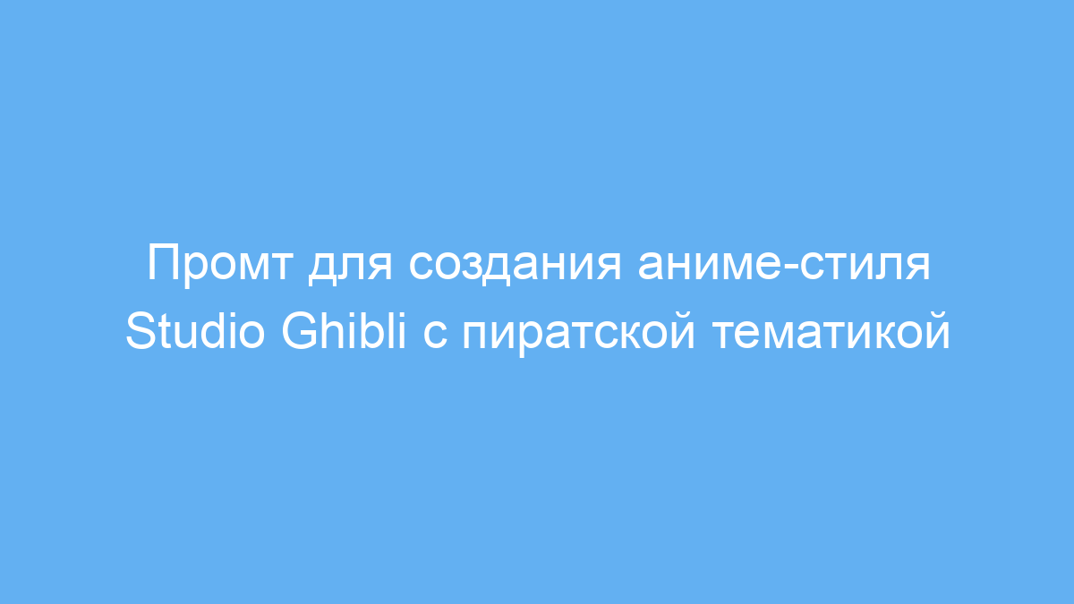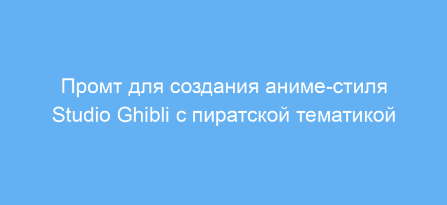 Если вы хотите быстро получить качественное изображение в стиле легендарных мультфильмов студии Ghibli с морской и пиратской тематикой, этот промт сделает процесс простым и удобным. Он экономит время на поиске подходящих эффектов и деталей, помогая создавать уникальный контент для проектов, презентаций или обучения.