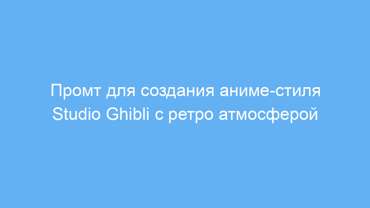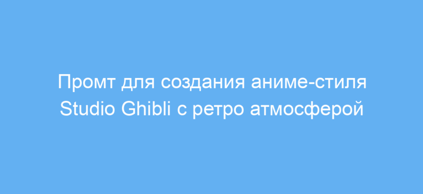 Этот промт позволяет быстро и просто преобразить любую фотографию в уникальное изображение в стиле классического аниме Studio Ghibli с атмосферой ретро. Он помогает создавать ту самую ностальгическую и тёплую атмосферу, которая может усилить эмоциональное восприятие визуального контента. Использование данного промта экономит время, избавляет от необходимости вручную работать с графикой и позволяет концентрироваться на творческой идее.