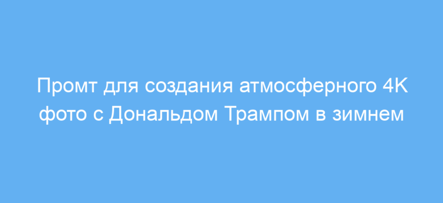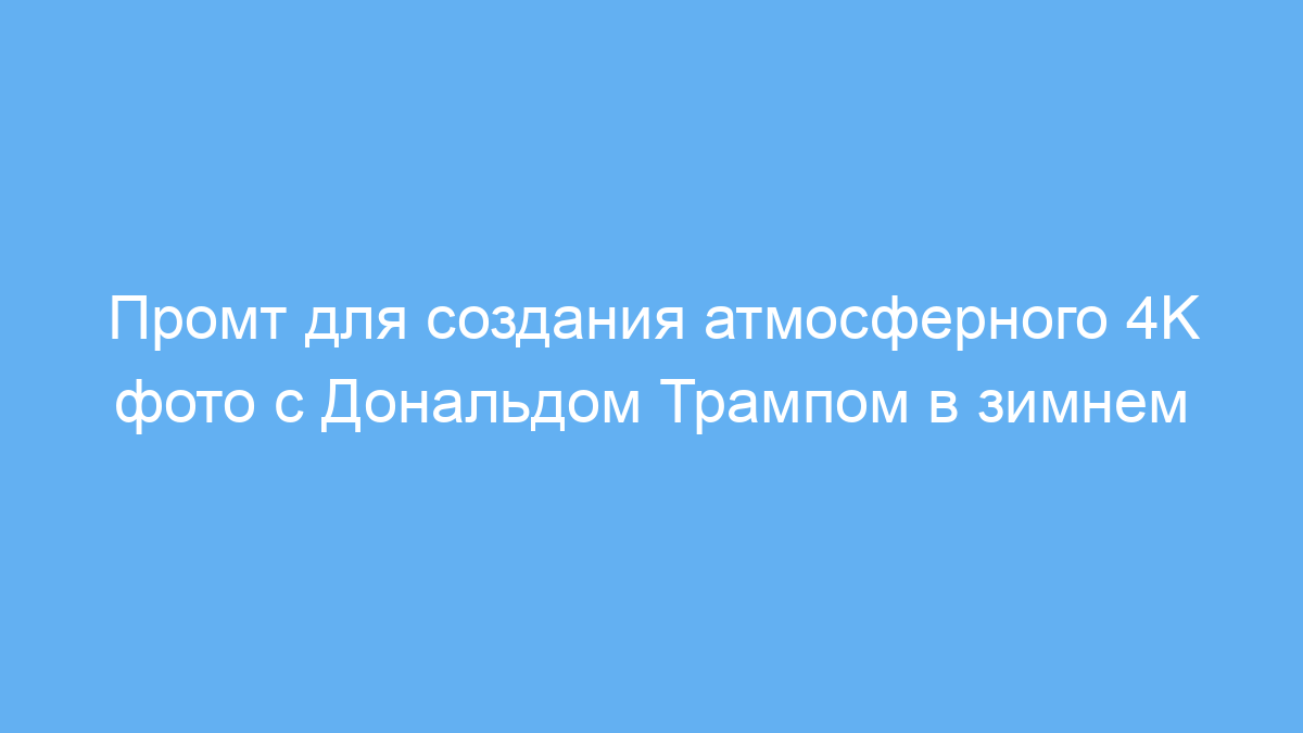 Этот промт предназначен для пользователей нейросетей, которые хотят получить качественное, детализированное изображение с атмосферой реального события. В частности, он помогает создать 4K фото с узнаваемым персонажем — Дональдом Трампом — в зимнем Центральном парке Нью-Йорка с элементами, подчеркивающими холод и зимнюю обстановку.