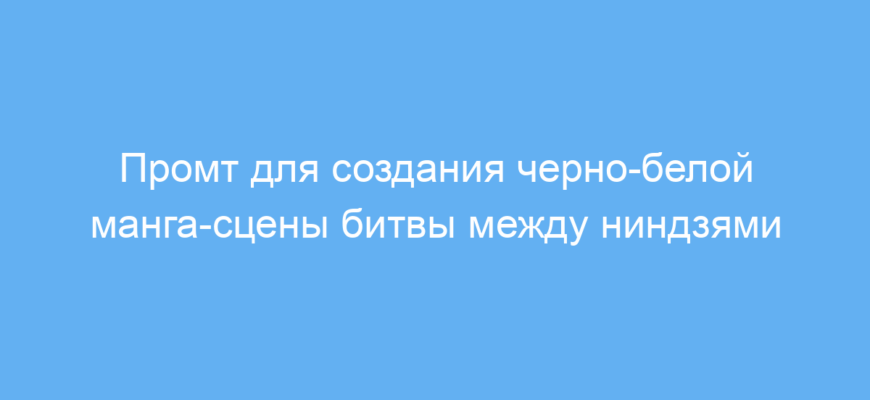 ✅ Пример: Черно-белая манга-сцена битвы между двумя ниндзя, динамичные линии создают эффект скорости и силы, на фоне детализированный бамбуковый лес с реалистичными тенями и текстурами.
