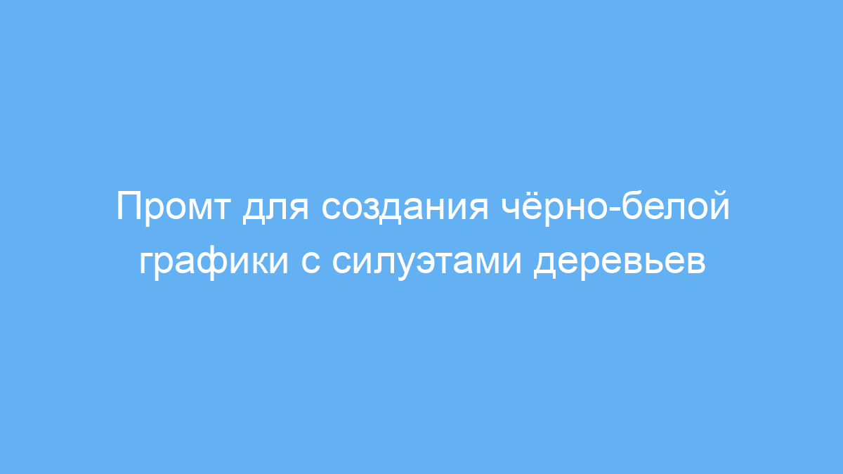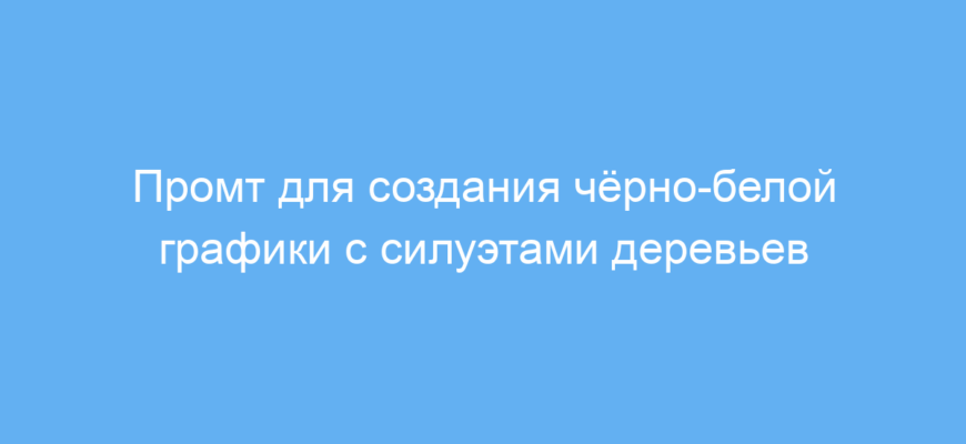 Этот промт предназначен для пользователей, которые хотят быстро создавать выразительные чёрно-белые изображения с природными элементами, такими как силуэты деревьев на фоне заката. Он отлично подойдёт художникам, дизайнерам, иллюстраторам и всем, кто работает с нейросетями для генерации графики.