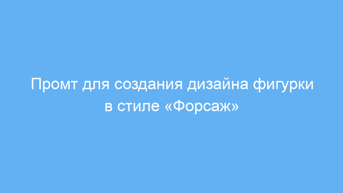 Этот промт предназначен для дизайнеров, маркетологов и творческих специалистов, которые работают с нейросетями для генерации оригинальных визуальных концепций. Он помогает быстро создать дизайн пластиковой фигурки по фото с дополнительным оформлением в стиле популярной франшизы «Форсаж».