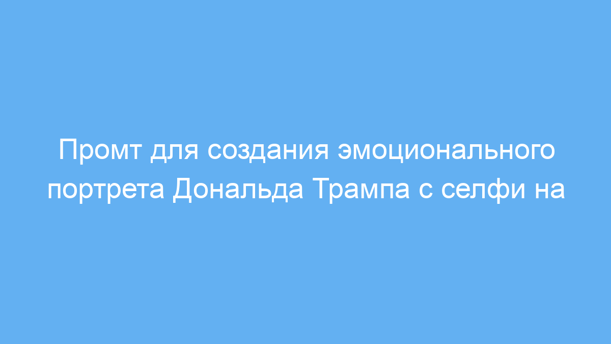 Этот промт предназначен для пользователей нейросетей, которые хотят сгенерировать реалистичное и атмосферное изображение с конкретным сюжетом — эмоциональный портрет Дональда Трампа, делающего селфи с уникальной статуей в природном окружении. Часто его используют художники, дизайнеры, маркетологи, а также любители нестандартного визуального контента.