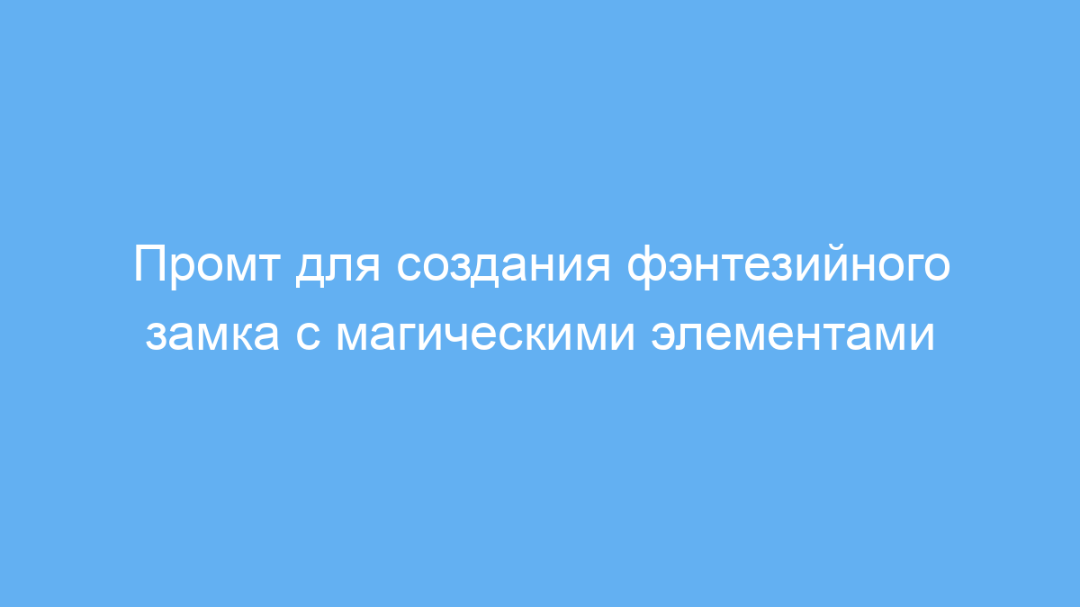 ✅ Пример: изображение величественного замка с острыми башнями и каменными стенами, расположенного на вершине высокой горы. Все вокруг окутано густым туманом с мягким голубоватым свечением. С четырех углов замка излучаются светящиеся кристаллы, придавая картине сказочную и загадочную атмосферу. Стиль выполнен в классическом фэнтези с насыщенными цветами и детальной прорисовкой элементов.