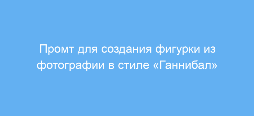 Этот промт экономит ваше время и творческие силы при создании уникального визуального образа фигурки с тематическим интерьером в стиле «Ганнибал». Вы быстро получаете яркое, детализированное изображение для рекламы, подарков или творческих проектов, избегая сложного моделирования или ручной графики.