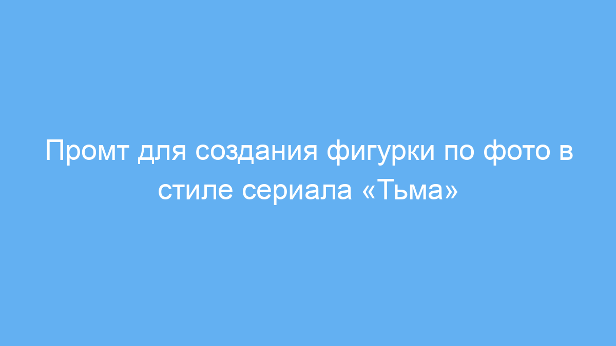 Этот промт создан для тех, кто хочет получить уникальное изображение пластиковой фигурки по фотографии, оформленное в стилистике знаменитого сериала «Тьма». В первую очередь он будет полезен фанатам сериала, коллекционерам, а также дизайнерам и создателям контента, которым необходимо сгенерировать атмосферные визуалы с конкретными деталями и локациями.