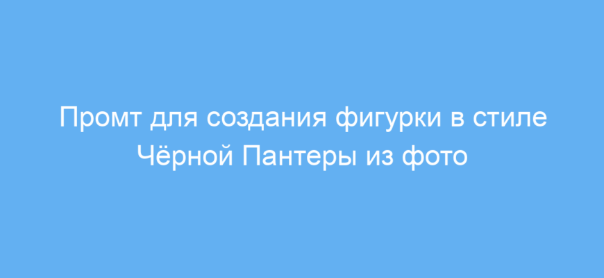 Работает промт так: пользователь загружает своё фото, а нейросеть превращает его в реалистичную фигурку из пластика, помещённую в чёрную коробку с серебряным узором Ваканды. Детали фигурки — как мини-пантера, кристальный кинжал и шлем — добавляют образу атмосферу и узнаваемость. Ракурс крупного плана с яркой контрастной цветопередачей улучшает восприятие изображения. Дополнительно на коробке можно разместить индивидуальный текст.