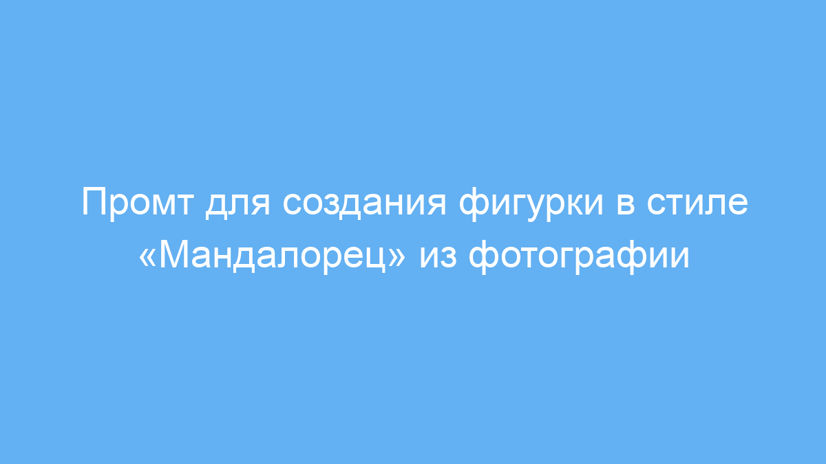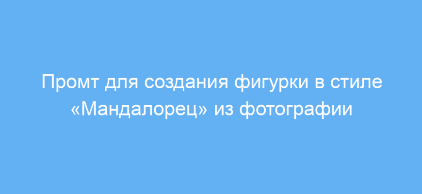 Этот промт предназначен для пользователей нейросетей, которые хотят получить уникальное изображение пластиковой фигурки в стиле «Мандалорец» из своей фотографии. Он полезен дизайнерам, коллекционерам и фанатам вселенной «Звёздных войн», а также всем, кто желает визуализировать собственный персонаж или объект в виде детализированной миниатюры.