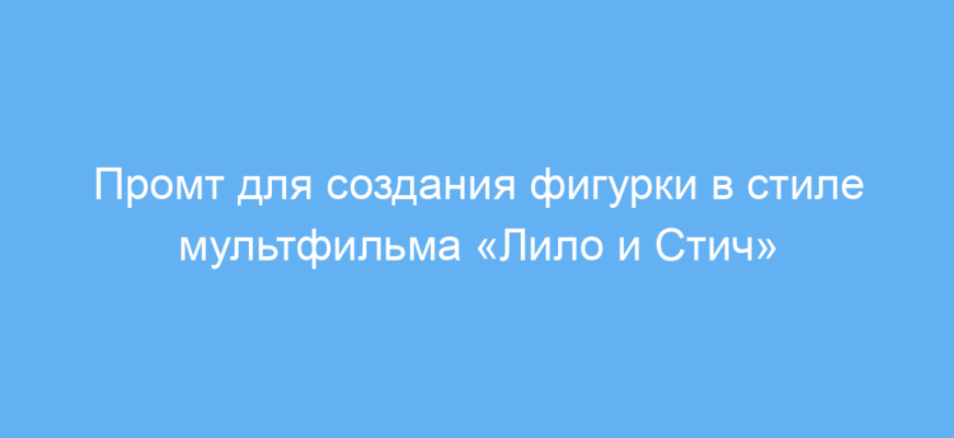 Этот промт упрощает процесс создания стилизованных изображений фигурок с индивидуальным дизайном. Он помогает быстро получить качественную визуализацию в конкретной тематике «Лило и Стич» для использования в коммерческих проектах, подарках и презентациях, экономя время и силы на ручное оформление. Простая структура запроса облегчает повторное использование и настройку под разные задачи.