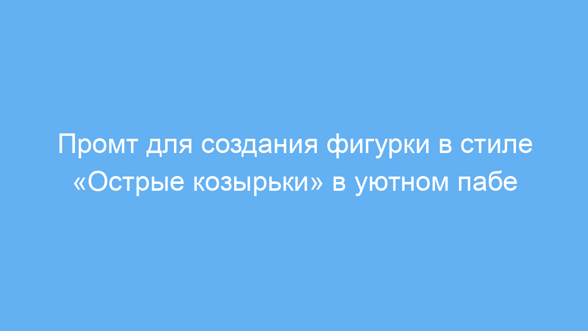 Использование этого промта позволяет быстро и эффективно создать тематическое изображение с пластиковой фигуркой и атмосферой сериала «Острые козырьки». Вы экономите время на описание деталей и получаете качественный визуальный результат для творчества, презентаций или рекламы.