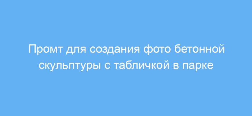 Этот промт позволяет быстро получить уникальное и качественное изображение бетонной скульптуры с нужным текстом в конкретном месте. Он экономит время на создание визуального контента и облегчает работу с нейросетями для дизайнеров и контент-мейкеров.