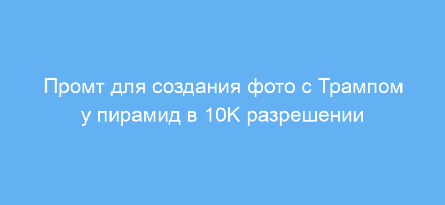 Этот промт предназначен для пользователей нейросетей, которые хотят получить детализированное и реалистичное изображение с конкретным сюжетом: Дональд Трамп делает селфи у пирамид Гизы. Основная задача промта — быстро и легко сгенерировать фотографию высокого качества с четкими деталями и заданной композицией. Это помогает художникам, блогерам, дизайнерам и исследователям создавать уникальный визуальный контент без необходимости самостоятельно фотографировать или рисовать сложные сцены.