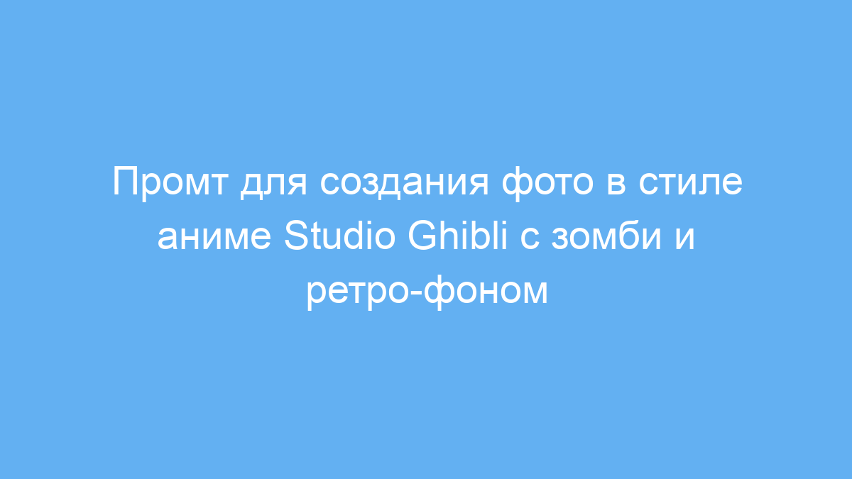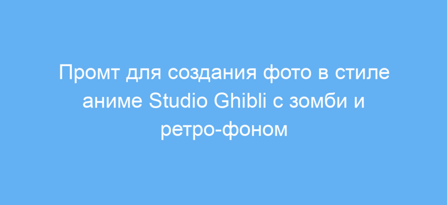 Этот промт создан для тех, кто хочет преобразовать обычную фотографию в уникальное изображение, сочетающее в себе атмосферу аниме Studio Ghibli и элементы зомби в ретро-стиле. Он идеально подходит для дизайнеров, блогеров, иллюстраторов и всех, кто интересуется креативным визуальным контентом.
