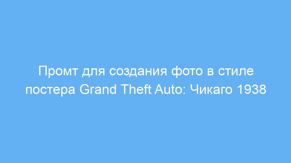 Главное преимущество: получение детализированного, стилизованного постера в стиле GTA с антуражем Чикаго 1938 без сложных настроек и многократных правок.