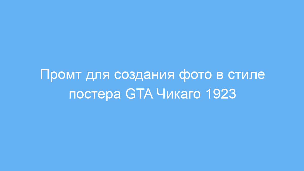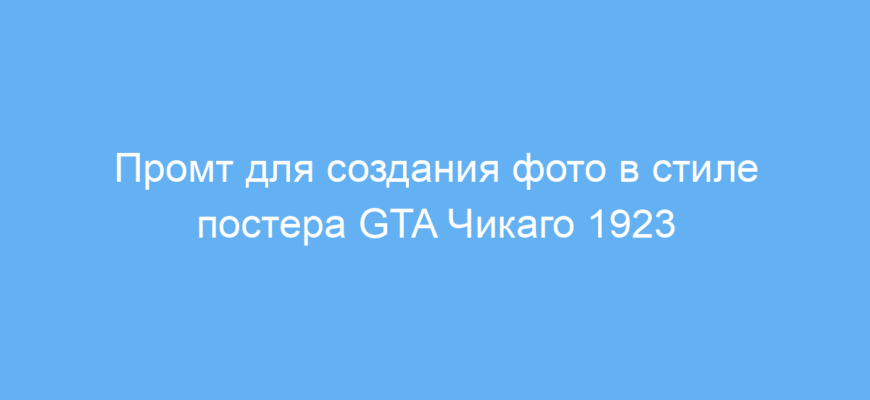 Этот промт предназначен для тех, кто хочет преобразить собственные фотографии в уникальном стиле культовой игры Grand Theft Auto с атмосферой Чикаго 1923 года. Особенно полезен дизайнерам, контент-мейкерам и любителям цифрового искусства, которые ищут способ быстро создавать тематические игровые постеры с элементами эпохи Сухого закона.