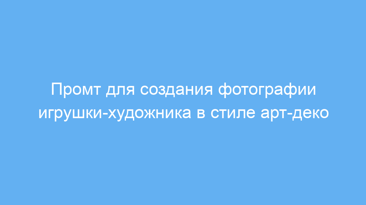 Этот промт экономит время на поиск и создание уникальных фотографий игрушек-художников в стильном арт-деко оформлении с возможностью персонализации. Он упрощает процесс визуального оформления проектов и помогает поддержать индивидуальность в творческой работе.