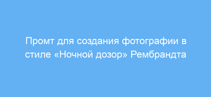Как работает промт: он задаёт нейросети конкретные художественные параметры — стилистику Рембрандта, высококонтрастное освещение и динамичное расположение фигур. Вместе это формирует художественный образ, близкий к оригиналу «Ночного дозора».
