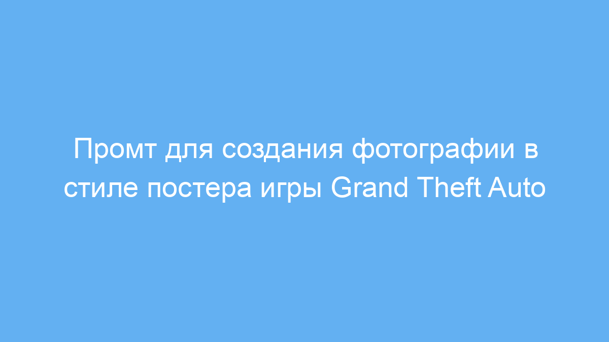 Этот промт предназначен для пользователей, которые хотят быстро и легко создать уникальное изображение в узнаваемом стиле игры Grand Theft Auto (GTA). Чаще всего это дизайнеры, блогеры, маркетологи и любители ретро-игр, которым нужно оформить фото в классическом стиле GTA с атмосферой 1960-х годов. Промт помогает преобразовать обычную фотографию в атмосферный игровой постер с характерным художественным стилем, решая задачу создания яркого визуального контента без сложного редактирования вручную.