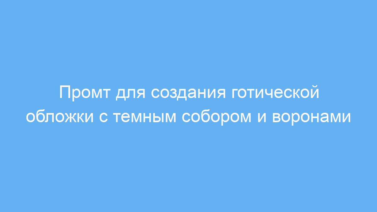 Этот промт предназначен для дизайнеров, маркетологов и творческих специалистов, которые хотят быстро и просто получить готическое изображение для социальных сетей. Он помогает создать атмосферу мрачности с помощью элементов темного собора, воронов и черно-белой графики. Использование промта экономит время на поиск и создание сложных иллюстраций, а также дает возможность настроить стиль и настроение обложки.
