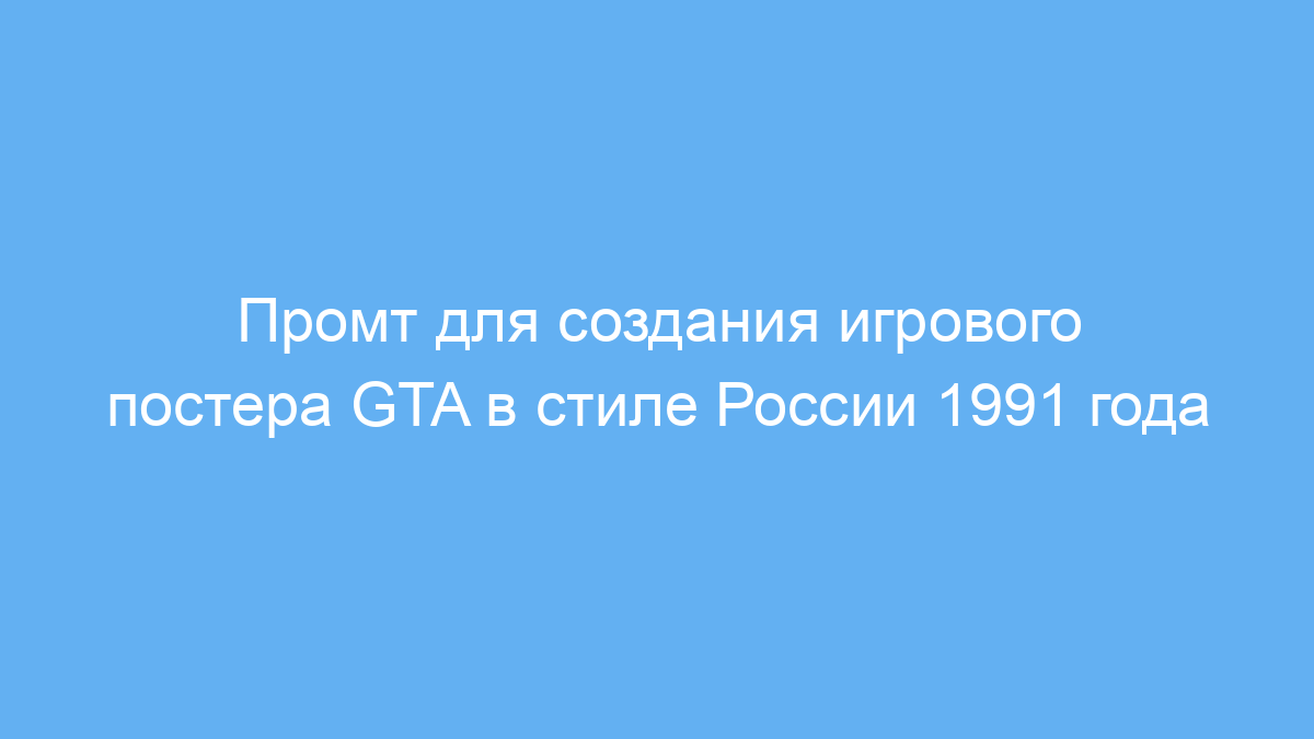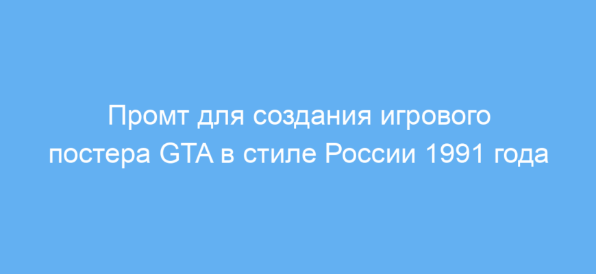 Этот промт предназначен для тех, кто хочет быстро и качественно преобразовать фотографию в уникальный игровой постер в стиле знаменитой серии Grand Theft Auto (GTA). Он поможет визуализировать атмосферу Москвы начала 90-х годов с характерным художественным стилем GTA. Такой подход особенно полезен дизайнерам, иллюстраторам и маркетологам, которым нужно создать эффектные обложки, образы персонажей или тематические баннеры, отражающие эпоху и культурные особенности того времени.