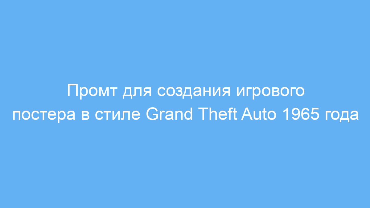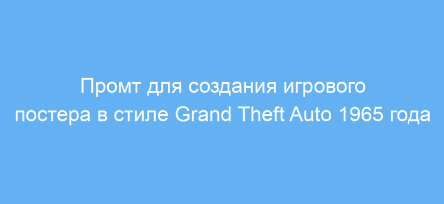 Этот промт подходит дизайнерам, художникам, маркетологам и всем, кто хочет быстро преобразовать фотографию в оригинальный арт в стиле игры Grand Theft Auto (GTA) с атмосферой Чикаго 1965 года и эстетикой 60-х. Использование такого промта позволяет создавать яркие, стильные изображения для проектов, рекламы или вдохновения, сохраняя уникальность и ностальгическую атмосферу ретро.
