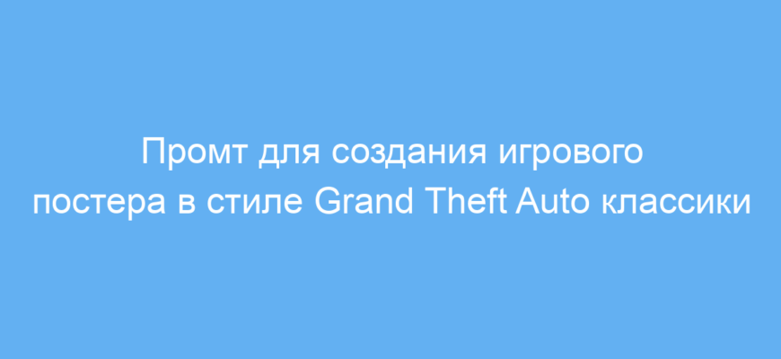Этот промт сэкономит время и упростит процесс создания стилизованных постеров в духе Grand Theft Auto с нужной атмосферой ретро-эпохи 1950-х. Он помогает быстро формировать кадры с характерными элементами и деталями, что полезно для дизайна, маркетинга и визуальных проектов.
