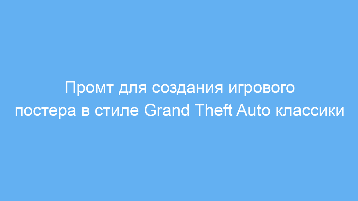 Промт решает задачу стилистического оформления изображения, позволяя быстро получить картинку с характерными элементами игрового постера GTA: четкая графика, акцент на персонаже и его атрибутах, детализированный фон с ретро-автомобилями и механическими деталями. Это помогает визуализировать концепцию или подобрать образы для промо-материалов и социальных сетей.