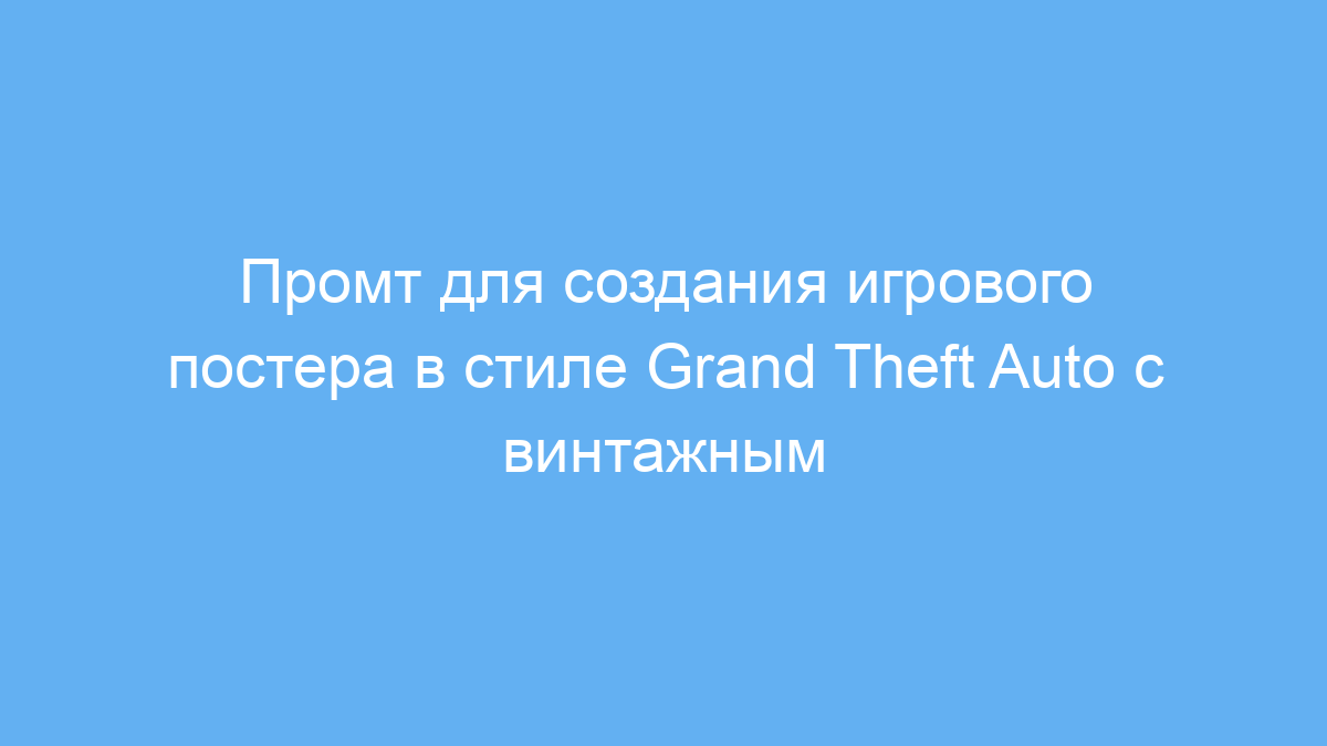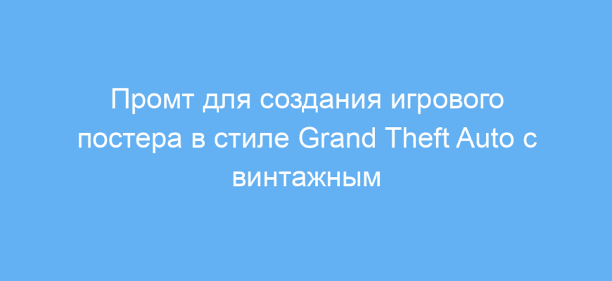 Этот промт предназначен для дизайнеров, маркетологов, художников и просто любителей уникального визуального контента, которые хотят преобразовать обычную фотографию в стильный постер в духе известной игры Grand Theft Auto (GTA). Особенно он полезен для создания рекламных материалов, иллюстраций к событиям или просто оригинального арта, сочетающего эстетику GTA и атмосферу 1940-х годов.