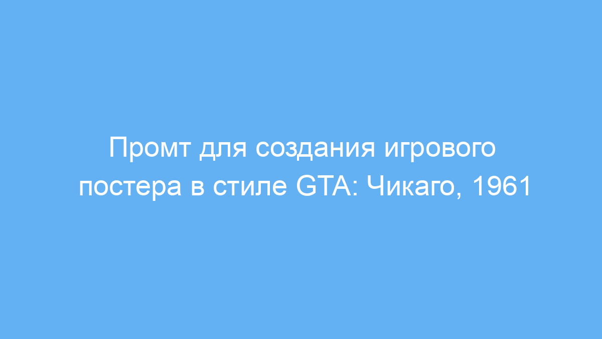 Этот промт предназначен для дизайнеров, маркетологов, художников и всех, кто хочет быстро создавать яркие игровые постеры в стиле серии Grand Theft Auto. Особенно он полезен тем, кто работает с нейросетями и ищет готовые запросы для генерации изображений с ретро-атмосферой. Промт помогает трансформировать обычные фотографии в стильные постеры с атмосферой Чикаго 60-х годов и элементами ретро-футуризма.