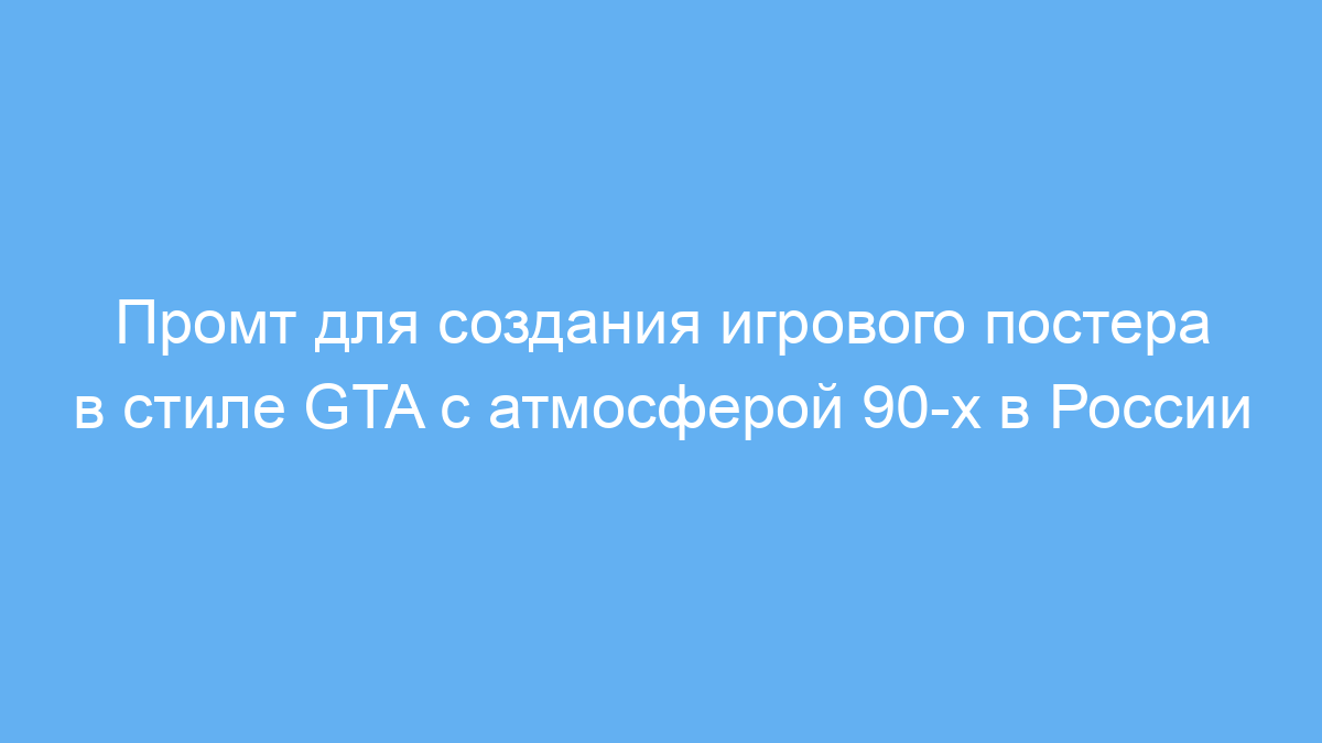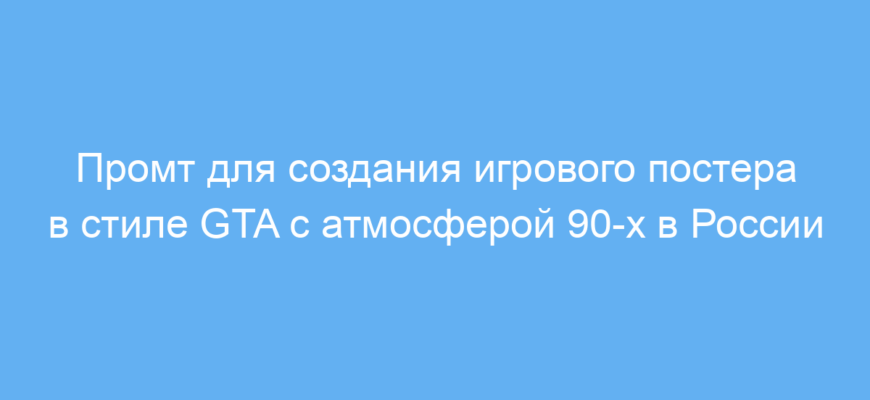 Этот промт помогает быстро создавать качественные игровые постеры в стиле Grand Theft Auto с уникальной атмосферой России 90-х годов. Он особенно полезен для проектов, связанных с ретро, играми и визуальными рассказами. Использование такого промта экономит время на детализацию и стилизацию, гарантируя яркий и узнаваемый результат.