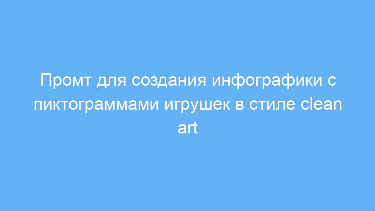Обратите внимание, что данный промт лучше всего подходит для инфографики в стиле минимализма (clean art) с пиктограммами игрушек — для других стилей или сложной графики его стоит адаптировать.
