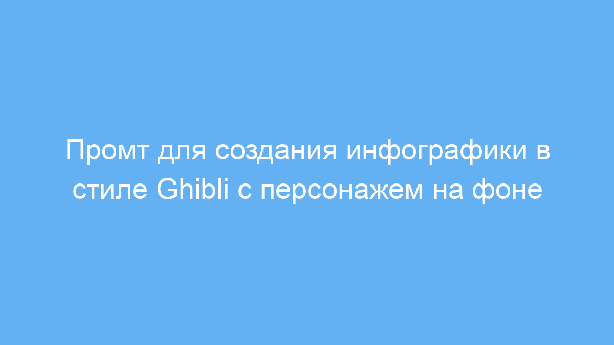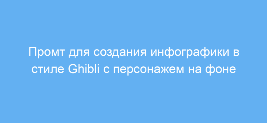 Этот промт позволяет быстро и просто создавать красивые инфографики в популярном стиле Ghibli, которые легко привлекают внимание и создают нужную атмосферу. Он экономит время на разработку дизайна и подходит для различных целей — от обучения до презентаций и маркетинга.