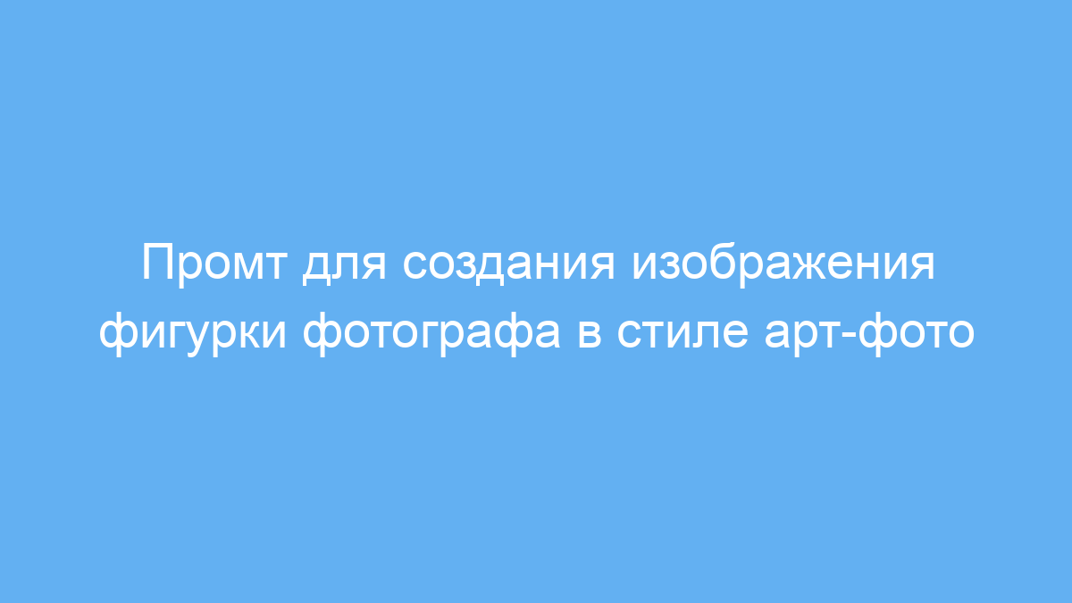 Этот промт предназначен для пользователей нейросетей, которым необходимо получить уникальное изображение фигурки фотографа с камерой конкретной модели. Такой промт особенно полезен фотографам, дизайнерам и маркетологам, желающим визуализировать бренд или творчество в художественном стиле. Он помогает быстро и просто создать качественную картинку с креативной надписью и оформлением, имитирующим студийную съемку.