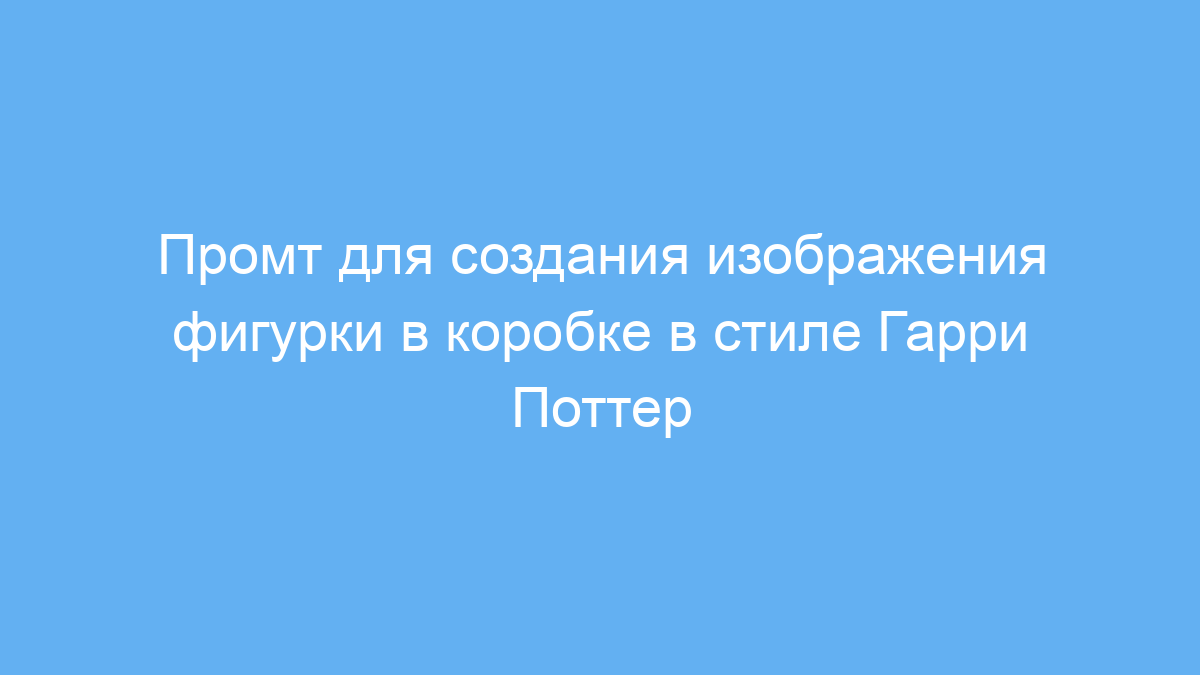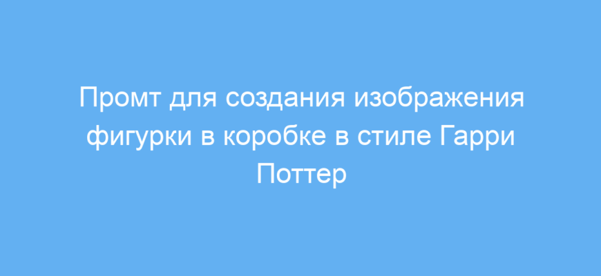 Промт решает задачи быстрой генерации картинок с заданным стилем и деталями. Вы задаёте фото для фигурки и указываете текст, который появится на коробке. Нейросеть создаст изображение в нужном ракурсе и атмосфере — тёплой и волшебной, с атрибутами, характерными для мира Гарри Поттера, включая герб Хогвартса и магические предметы рядом.