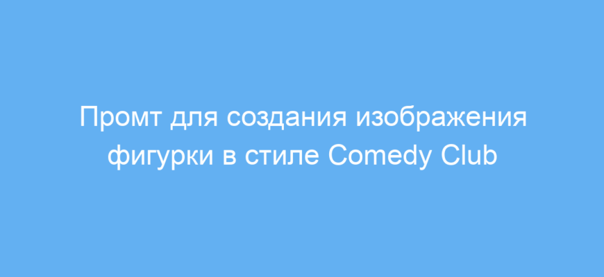 Этот промт подходит для дизайнеров, маркетологов, блогеров и всех, кто хочет быстро получить изображение пластиковой фигурки на фоне сцены Comedy Club. Он помогает автоматизировать процесс создания уникальной картинки с нужным оформлением и надписями, упрощая работу с нейронными сетями и экономя время на ручной фотомонтаж.