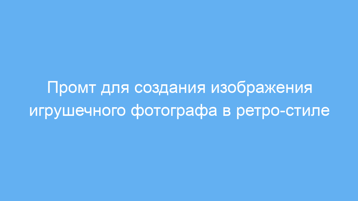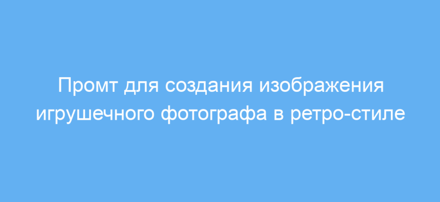 Этот промт предназначен для тех, кто хочет быстро получить уникальное изображение игрушечного фотографа с камерой на фоне фотостудии. Он полезен дизайнерам, блогерам, создателям контента и всем, кто работает с визуализацией и ищет вдохновение. Такой запрос помогает сэкономить время на ручном создании картинки и получить стильное изображение с ретро-атмосферой.