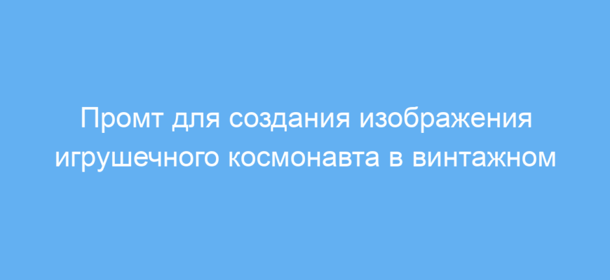 Промт дает нейросети чёткие инструкции: создать фигурку космонавта в стиле 80-х с фирменным логотипом на скафандре. Дополнительно указываются детали — миниатюрная ракета рядом и планета на заднем фоне. Благодаря этому результат получается тематичным и подходящим для проектов с ретро-атмосферой.