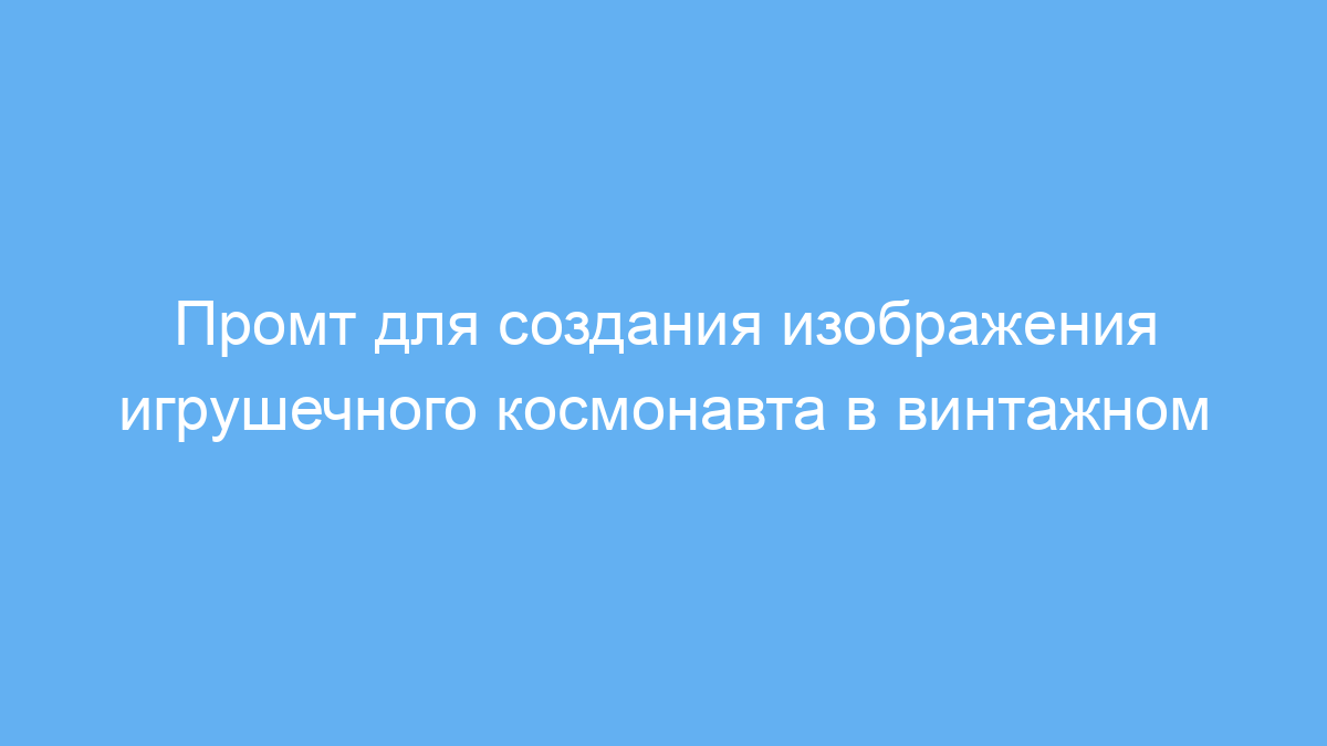 Этот промт предназначен для дизайнеров, маркетологов и создателей контента, которые хотят быстро получить уникальное изображение игрушечного космонавта в популярном винтажном стиле 80-х годов. Он помогает сгенерировать качественную и яркую картинку для рекламы, брендинга или иллюстраций без необходимости самостоятельного рисования.