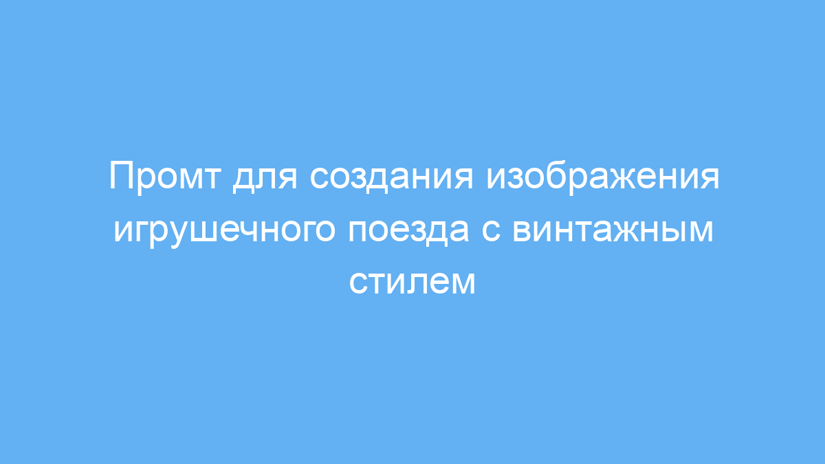 Данный промт предназначен для тех, кто хочет быстро и без навыков дизайна создать уникальное изображение игрушечного поезда с эффектами дыма, светящимися окнами и надписью на вагоне. Он полезен художникам, блогерам, разработчикам, маркетологам и всем, кто использует нейросети для генерации визуальных материалов в стиле ретро.