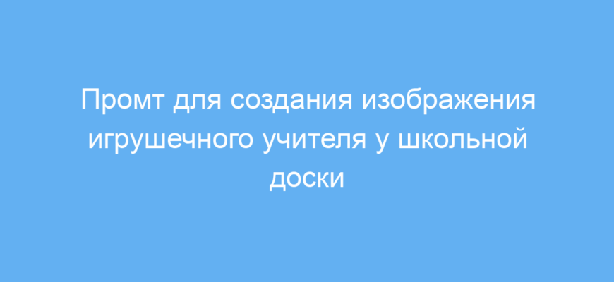 Промт работает так: пользователь передаёт его нейросети с указанием всех важных элементов и стиля. В ответ сеть генерирует картинку, в которой игрушечный учитель изображён у школьной доски с необходимыми аксессуарами и фоном. Такое изображение можно использовать в презентациях, уроках или рекламных материалах.