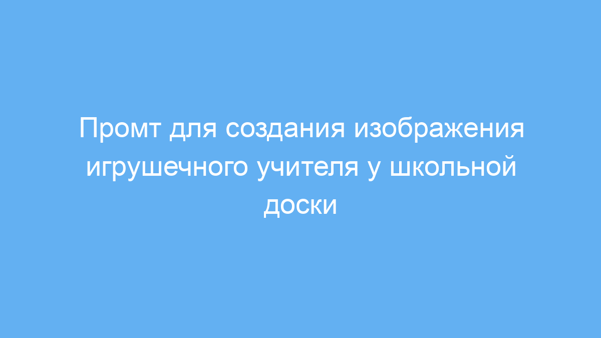 Этот промт предназначен для пользователей нейросетей, которым нужно быстро получить качественное изображение игрушечного учителя у школьной доски. Он особенно полезен дизайнерам, педагогам, создателям образовательного контента и маркетологам, работающим с темами школы и обучения.