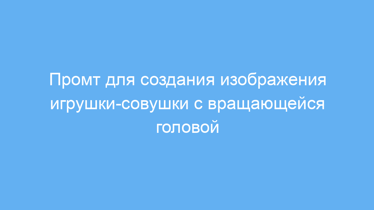 Данный промт подходит для дизайнеров, художников и создателей контента, которые хотят быстро и качественно получить визуализацию оригинальной игрушки-совушки. Он помогает сгенерировать реалистичное и детализированное изображение с уникальными элементами — например, вращающейся головой и светящимися глазами. Это ускоряет процесс разработки и позволяет визуализировать идеи перед созданием реального прототипа.