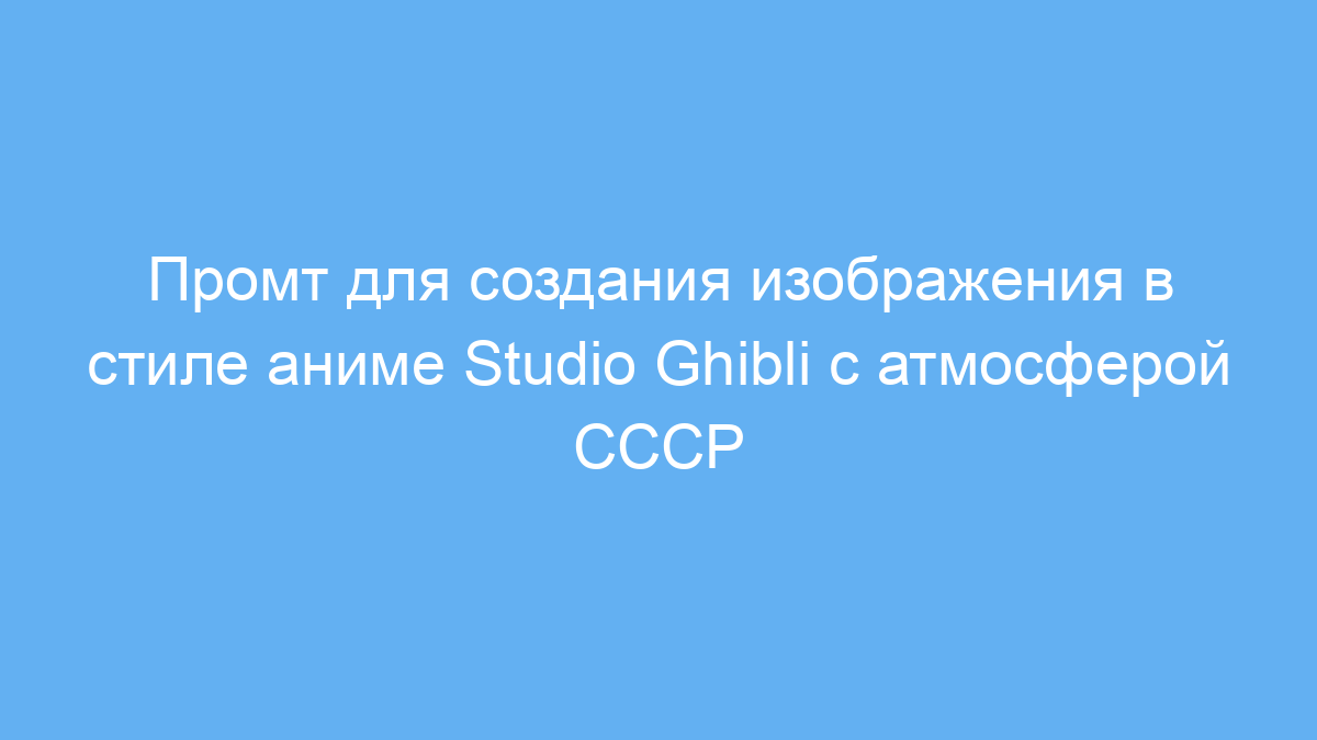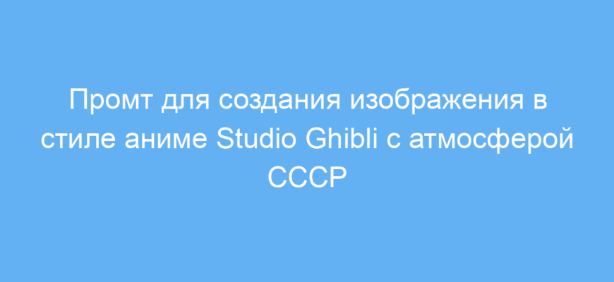 Использование данного промта существенно экономит время и усилия при создании художественных изображений в уникальном стиле. Он позволяет быстро сочетать эстетику Studio Ghibli с советской атмосферой, создавая выразительный визуальный контент для разных целей — от коммерческого дизайна до личных проектов и социальных сетей.