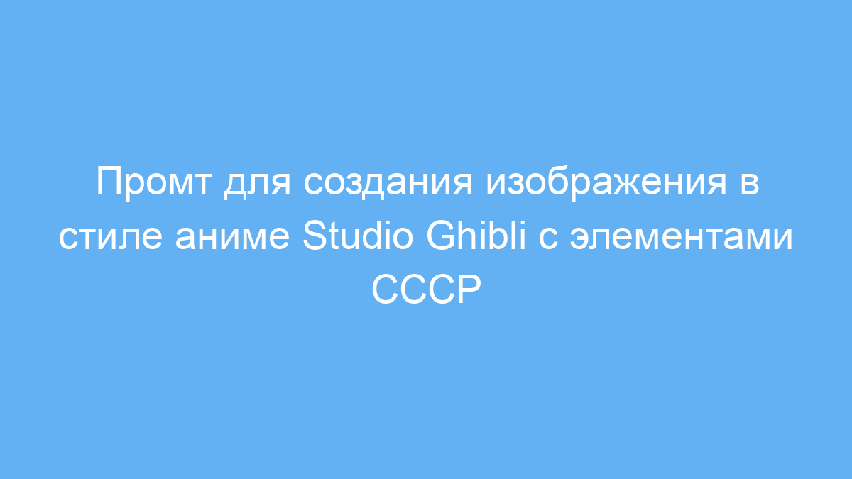 Использование этого промта упрощает создание уникальных визуальных образов, которые сочетают Восток и советское наследие. Он помогает быстро преобразовать обычное фото в художественное произведение с востребованным стилем аниме Studio Ghibli, экономя время и усилия художника.