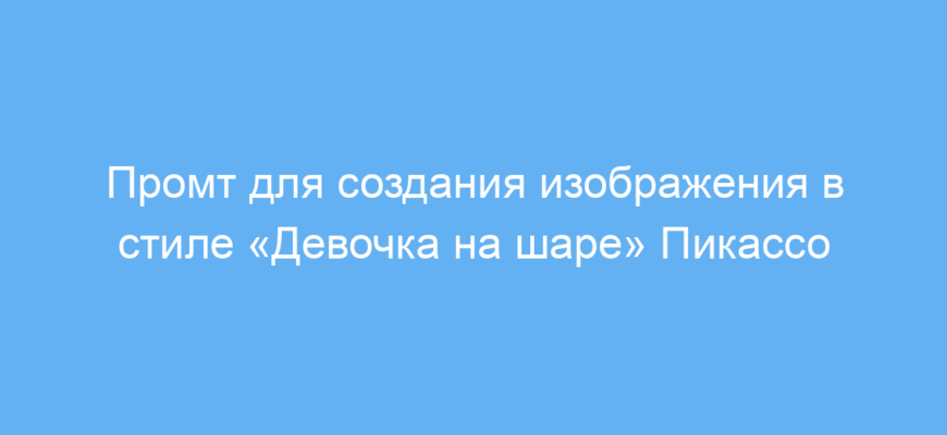 Этот промт предназначен для художников, дизайнеров, иллюстраторов и всех, кто хочет создавать уникальные изображения в стиле известной картины «Девочка на шаре» Пикассо. Его можно применять для вдохновения, создания концептов, художественных проектов или рекламы. Такой запрос помогает нейросети понять, что изображение должно иметь динамичную композицию с контрастными формами, отражать дух голубого периода Пикассо и передавать стилистику данной картины.